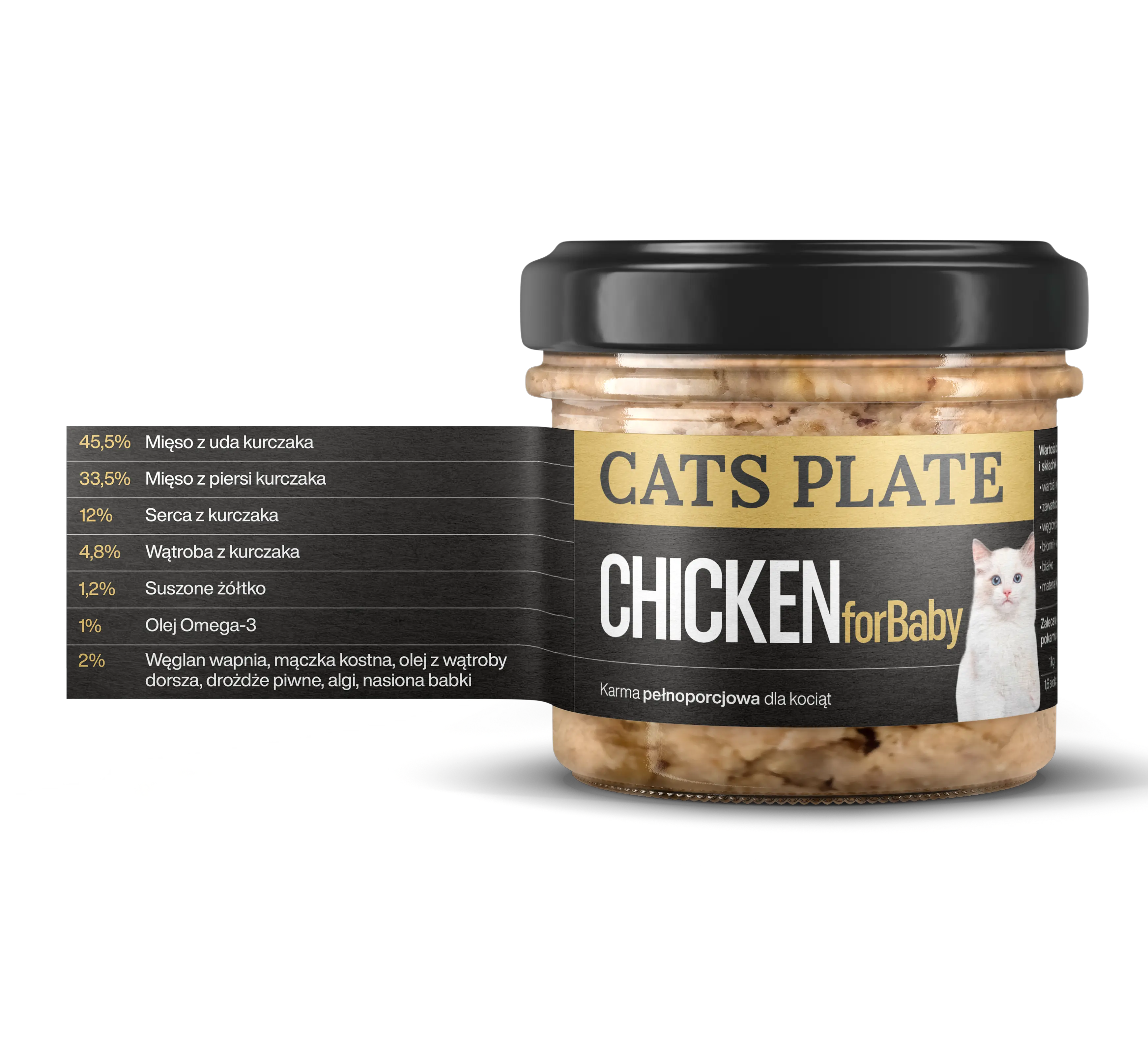 Jeśli szukasz naturalnego składu, wyjątkowego smaku i realnych korzyści zdrowotnych, wybierz naszą karmę Cats Plate For Baby.