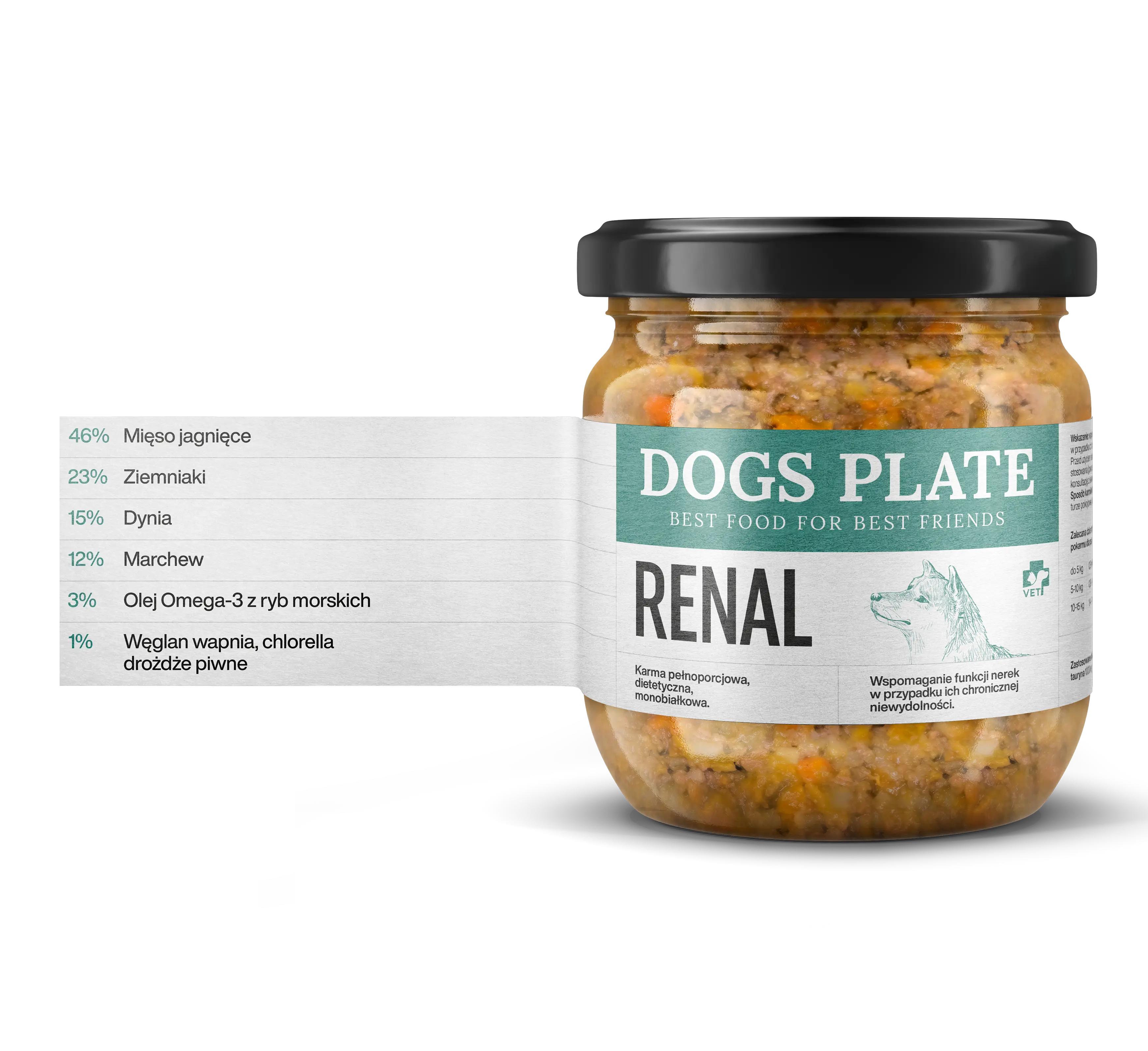 Dogs Plate Vet Renal to mokra, pełnoporcjowa karma dla psów z przewlekłą chorobą nerek.