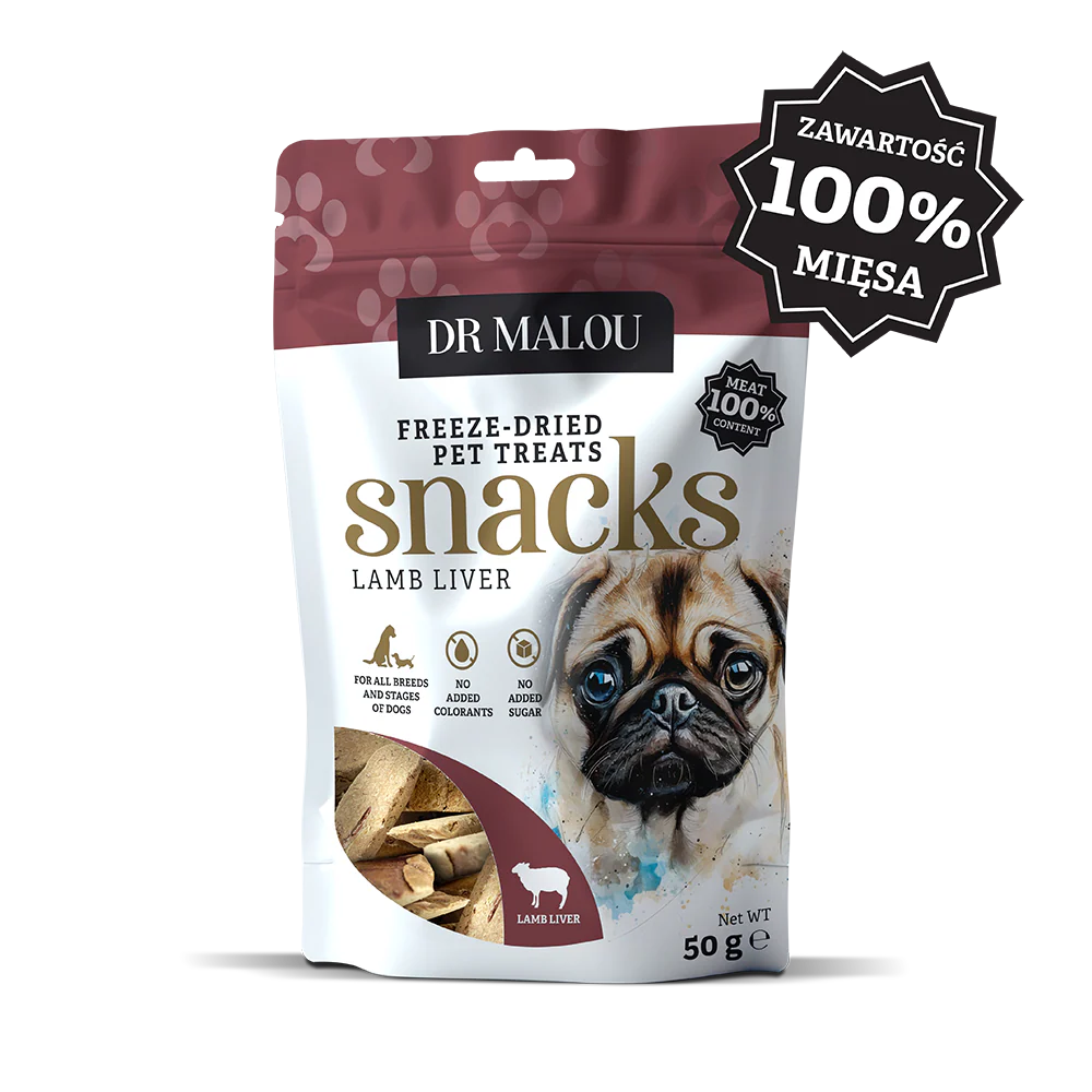 Liofilizowany przysmak dla psa Dr Malou 100% wątroba jagnięca – naturalne wsparcie zdrowia pupila