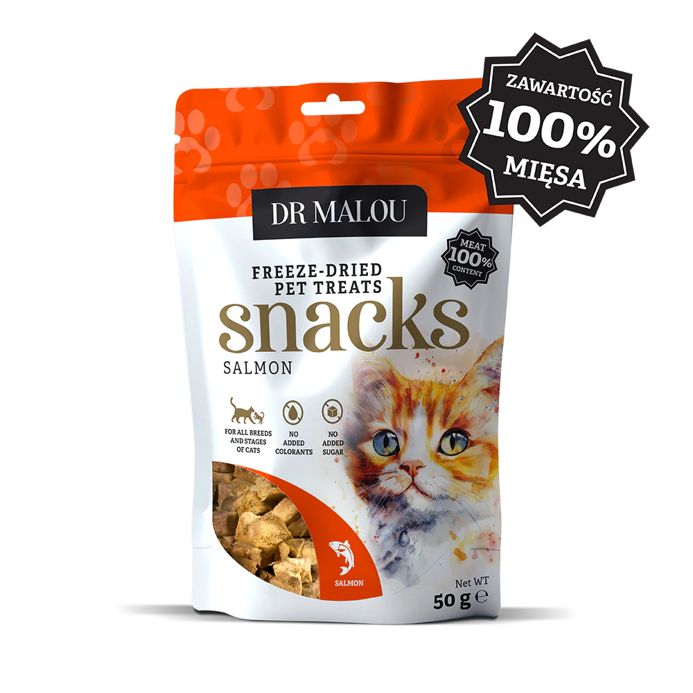 Szukasz zdrowego dodatku do diety swojego pupila? Przysmaki dla kota Dr Malou w formie liofilizowanych kostek to doskonały wybór! Zostały wyprodukowane wyłącznie z 100% mięsa łososia, bez użycia sztucznych dodatków, barwników i konserwantów.
