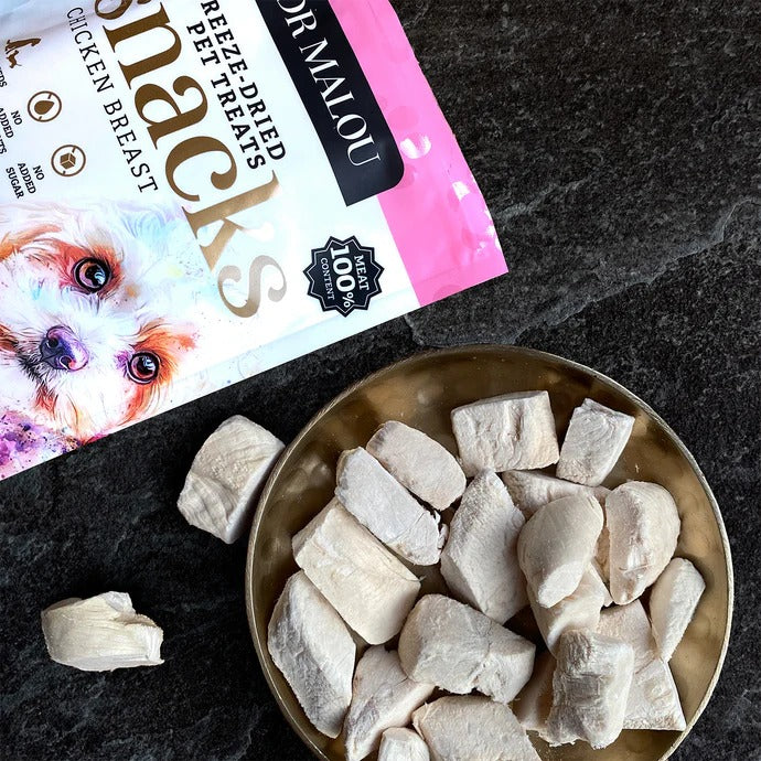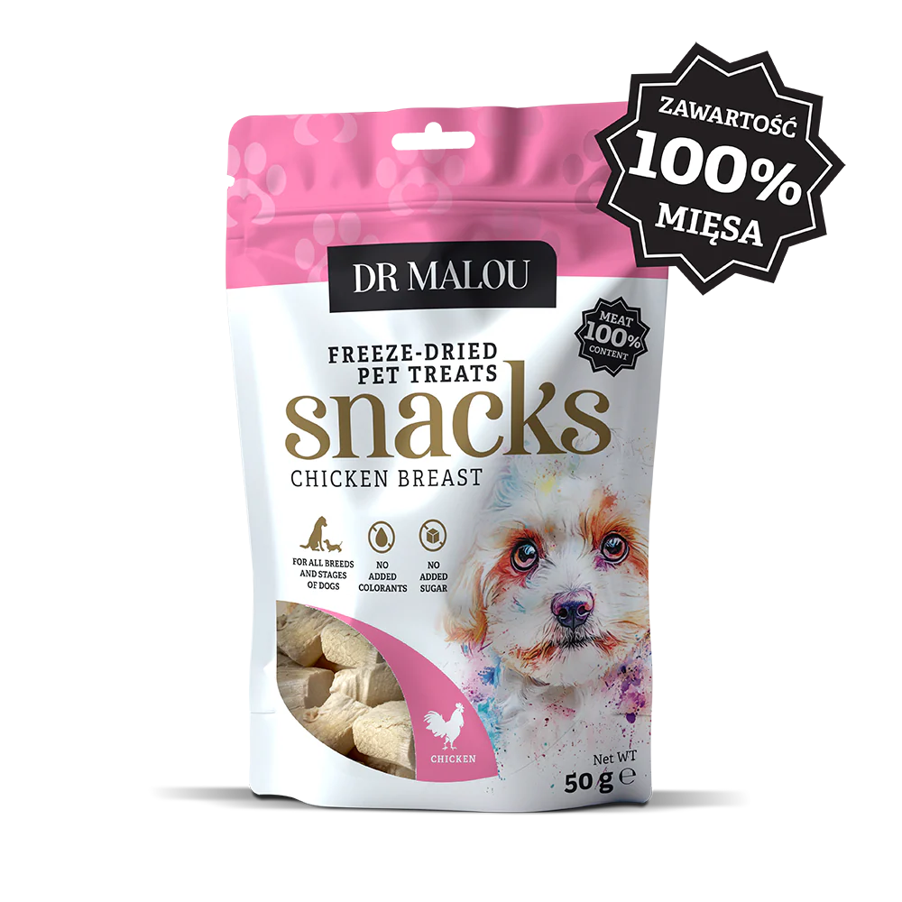 Naturalne przysmaki dla psa – kostki mięsne ze 100% liofilizowanej piersi z kurczaka Dr Malou