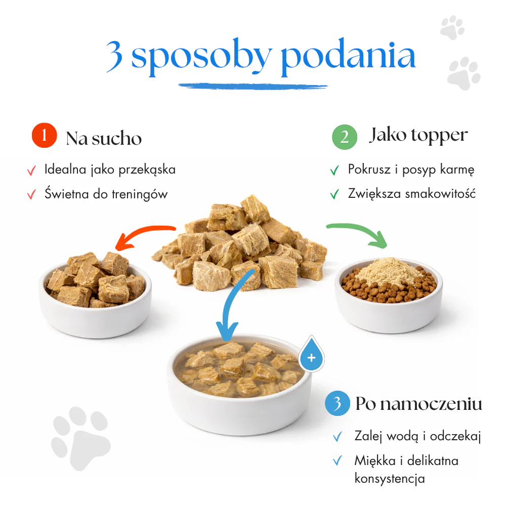 Obserwuj swojego pupila i dostosuj porcję tak, aby wspierała jego zdrowie i dobre samopoczucie każdego dnia.
