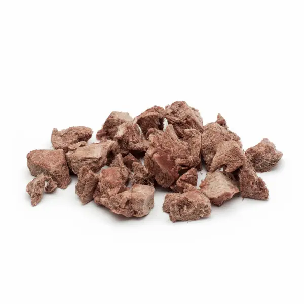 Naturalny smak i aromat: Dzięki liofilizacji wołowina zachowuje swój naturalny smak i aromat, co sprawia, że jest ona niezwykle atrakcyjna dla zwierząt.