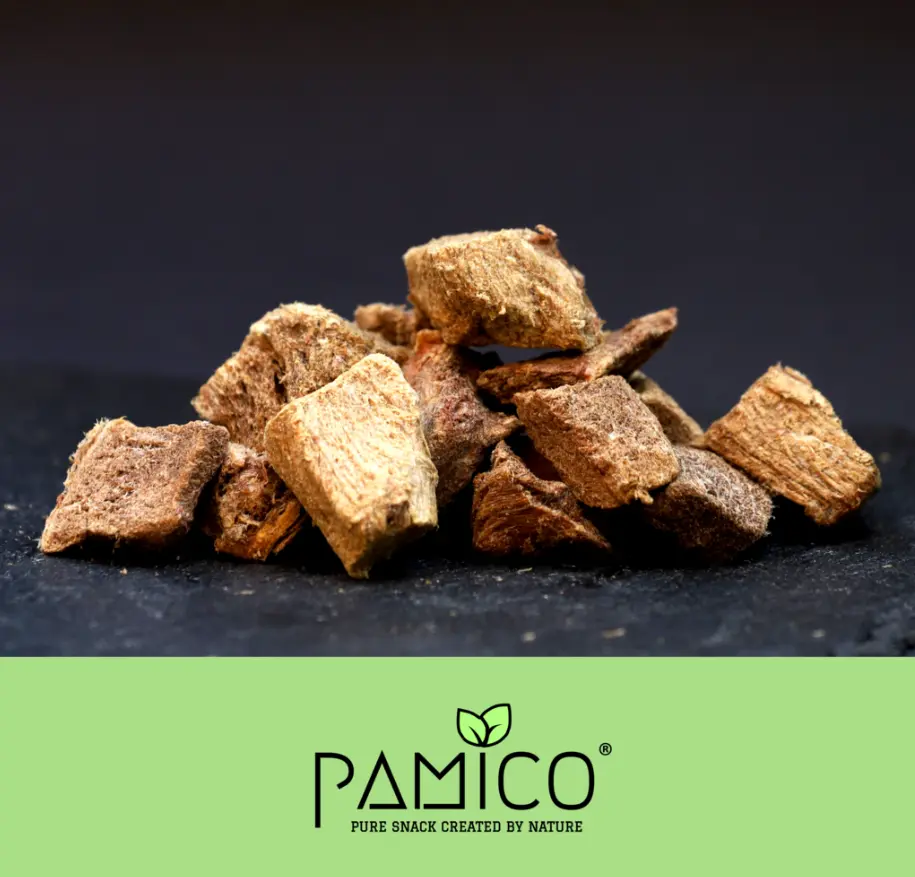 Proces liofilizacji zapobiega utracie cennych wartości odżywczych w surowym produkcie, a przysmaki zachowują naturalną strukturę i formę.