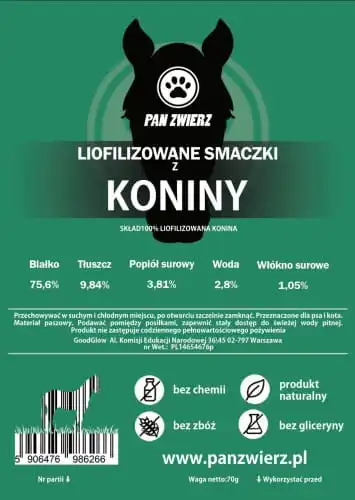 Skład: liofilizowane mięso z konia 100%