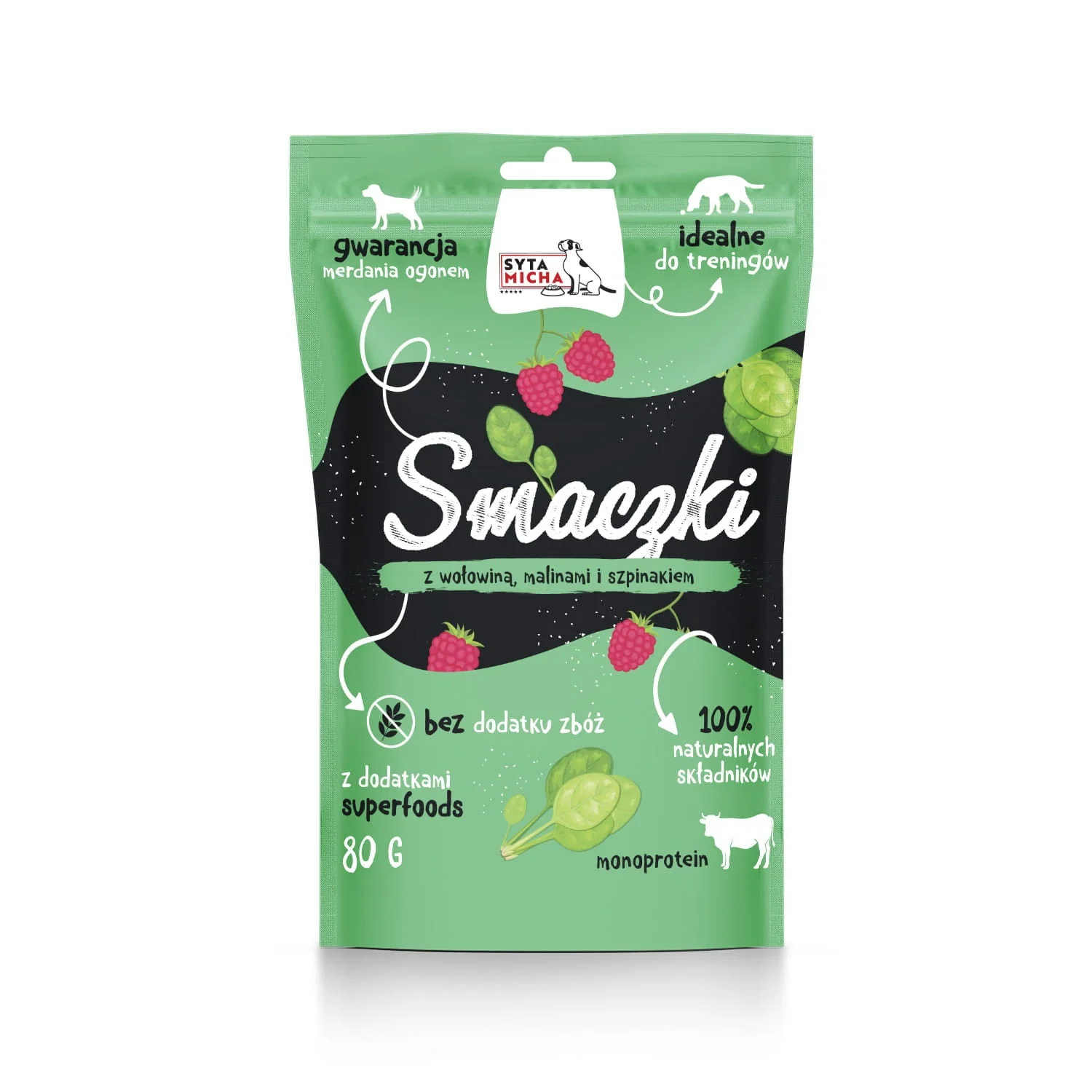 SYTA MICHA Smaczki Wołowiną, Malinami i Szpinakiem dla Psa 80g