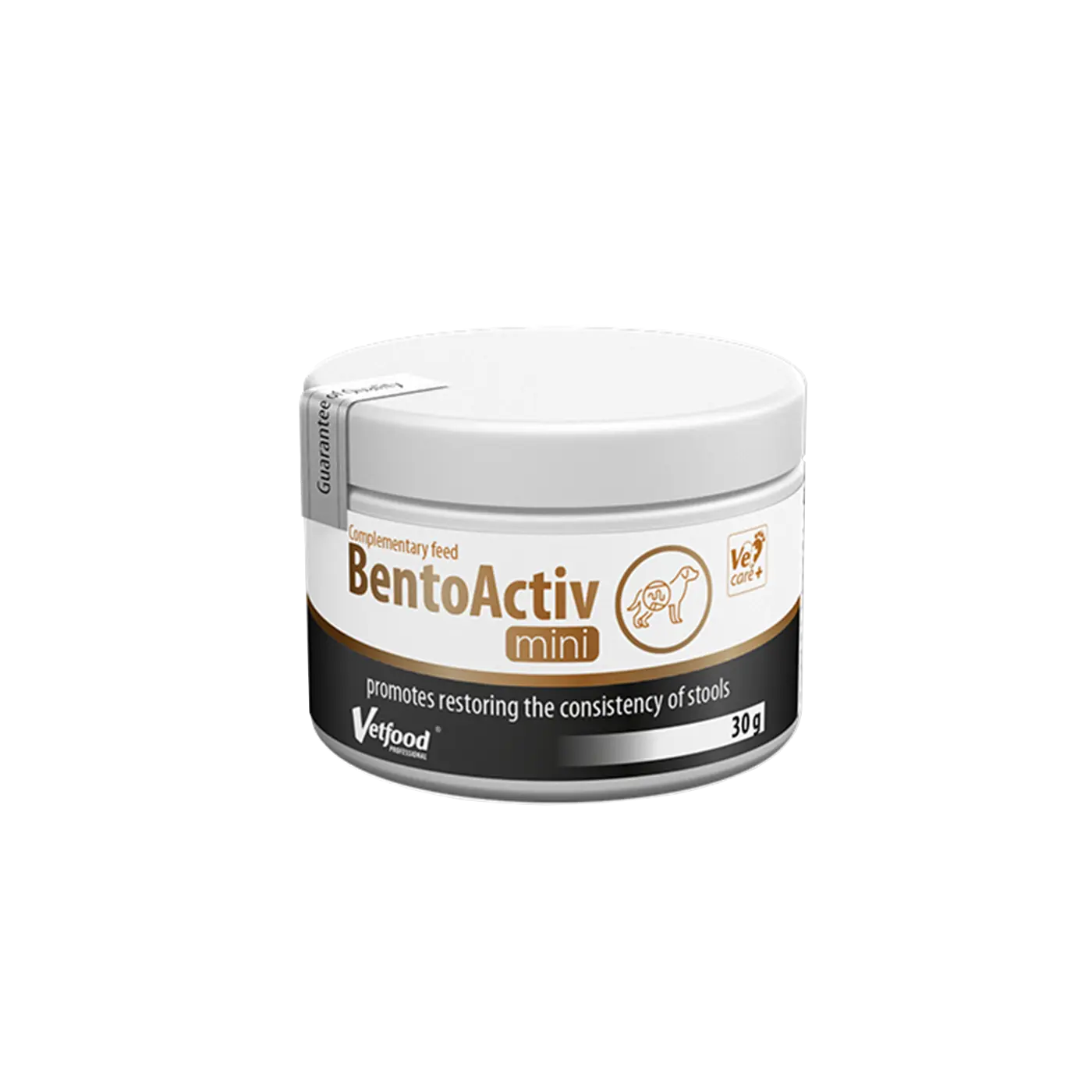 BentoActiv mini to produkt przeznaczony dla małych psów i kotów jako wsparcie w trakcie biegunek i niestrawności związanych z nieprawidłową absorpcją wody w jelitach.